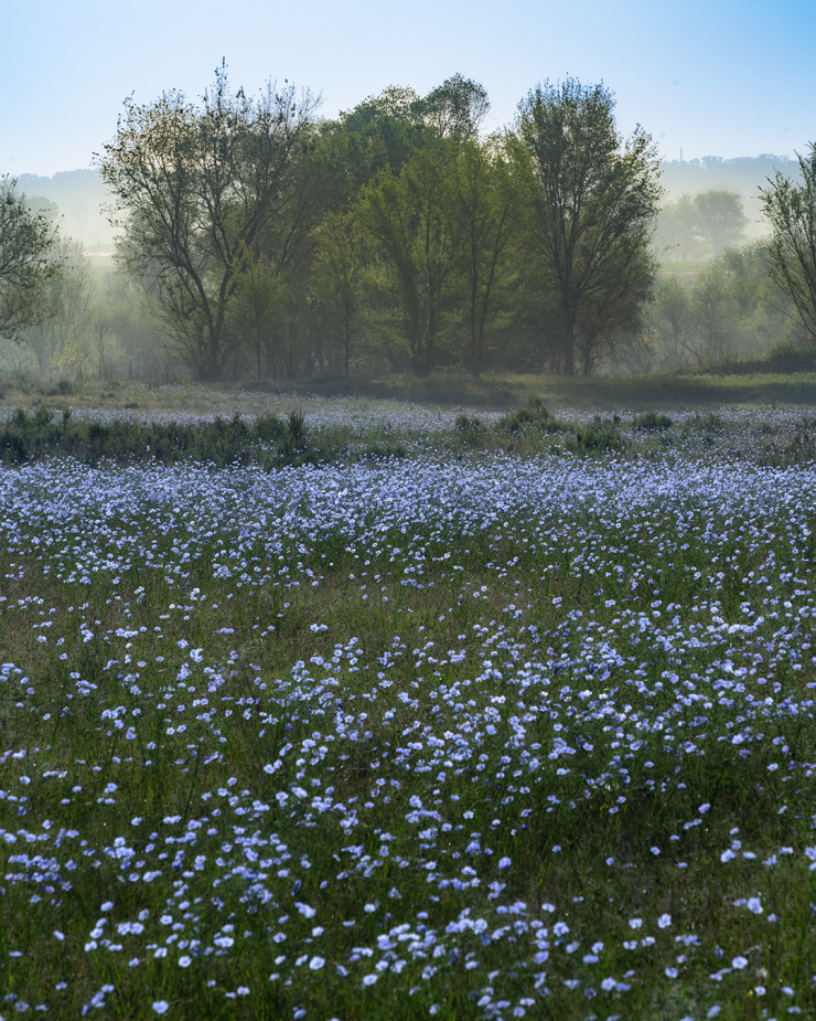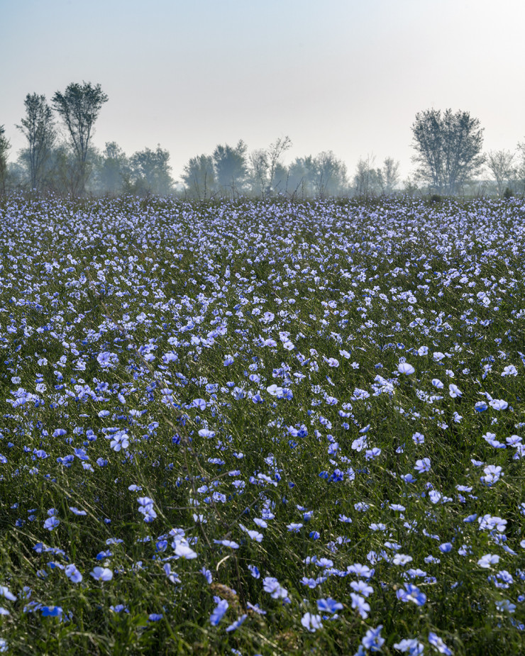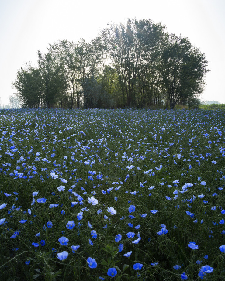 Фотограф удивлен, почему лен пока не пользуется такой популярностью у любителей фотосессий, как маки. Хотя цветение очень красивое. Это некий противовес макам: если они такие яркие и контрастные, то лен, наоборот, спокойный, с нежно-голубым оттенком.