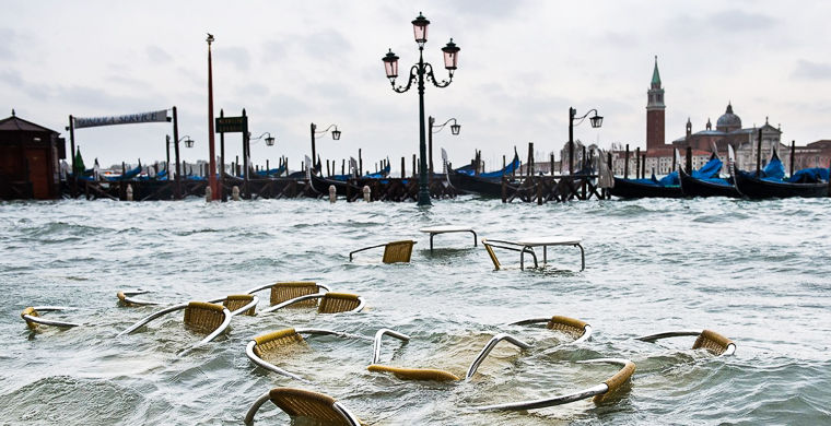 Причина не только в наступлении мирового океана на сушу, но и в безрассудной хозяйственной деятельности человека: промышленный забор воды из артезианских скважин и бурное строительство вызывают оседание грунта. Наводнения стали для жителей привычным явлением: до 45 процентов города регулярно оказывается затоплено водой, принесенной приливом со стороны Адриатического моря. И если сто лет назад площадь Сан-Марко затапливалась около девяти раз в год, то теперь это происходит около ста раз в год.