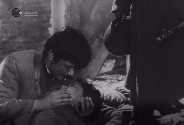 Финальная сцена из фильма "Песнь о Маншук". Слева актер Н. Михалков в роли лейтенанта Ежова. Из фондов ЦГА КФДЗ РК. При копировании ссылка на источник обязательна