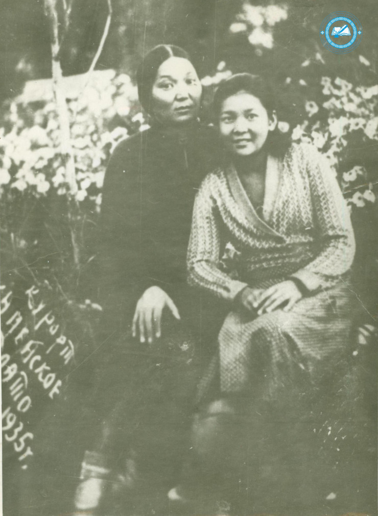 Маншук с матерью на курорте Каменское плато, город Алма-Ата. Из фондов ЦГА РК. При копировании ссылка на источник обязательна.