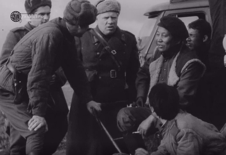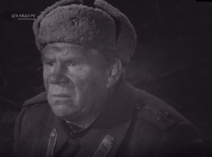 Кадр из фильма "Песнь о Маншук". Справа актер И. Дмитриев в роли командира полка. Из фондов ЦГА РК. При копировании ссылка на источник обязательна.