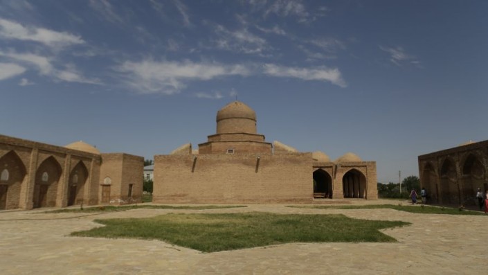Затем участники фестиваля двинулись к мавзолею Арыстан-Баба. По преданию, святой Арыстан-Баб был духовным наставником и учителем Ахмета Яссауи.