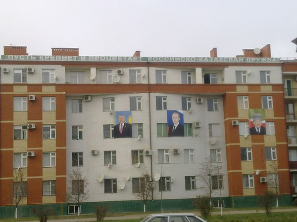 Так, деятельность Президента Нурсултана Назарбаева отметили в целом ряде стран: улицы, названные в его честь, есть в Чечне, Турции и Иордании. В Грозном улица Назарбаева появилась в 2007 году. А на крыше одного из домов на этой улице появился плакат с надписью "Пусть крепнет и процветает российско-казахская дружба!".