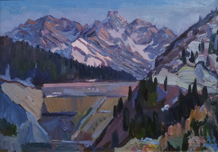 В тот год в Алма-Ату прибыл знаменитый американский художник Рокуэлл Кент. Он ознакомился с выставкой алма-атинских коллег в Казахской художественной галерее. А на прощание гостю предложили выбрать понравившуюся картину. С особым восхищением и не задумываясь, он остановился на пейзаже Алатауских гор с ледяными вершинами Жанатая Шарденова.