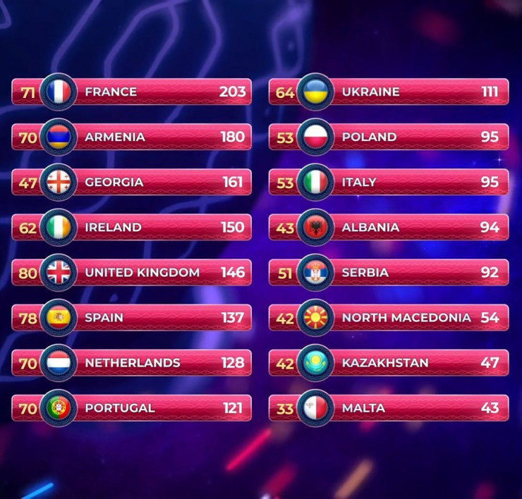 А победителем "Детского Евровидения" стал представитель Франции Lissandro с песней Oh Maman. Он набрал 203 голоса. Второе место заняла Армения (180 баллов). Тройку лидеров замкнула Грузия (161 балл).