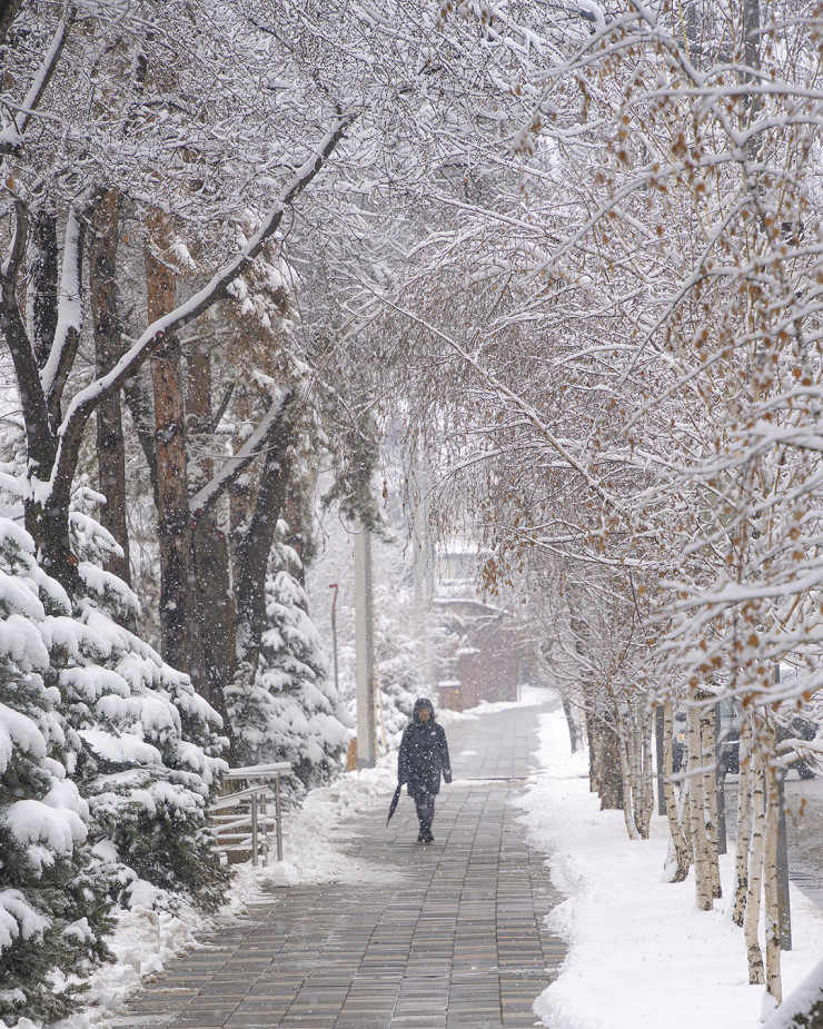 Во время снегопада в городе фотограф Дмитрий Доценко также сделал несколько красивых кадров заснеженного Алматы в конце марта.