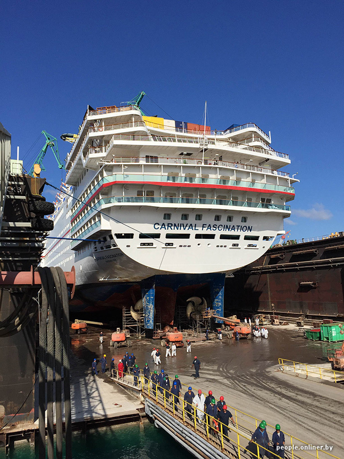 Примерно в середине контракта, рассказывает Илья, корабль отправили на плановый ремонт. Две недели лайнер стоял в сухом доке, обслуживали его 1500 ремонтников. Сотрудникам в этом время платили лишь "голый" оклад. Но зато заселили в отель, да и две недели без гостей - это как отпуск.