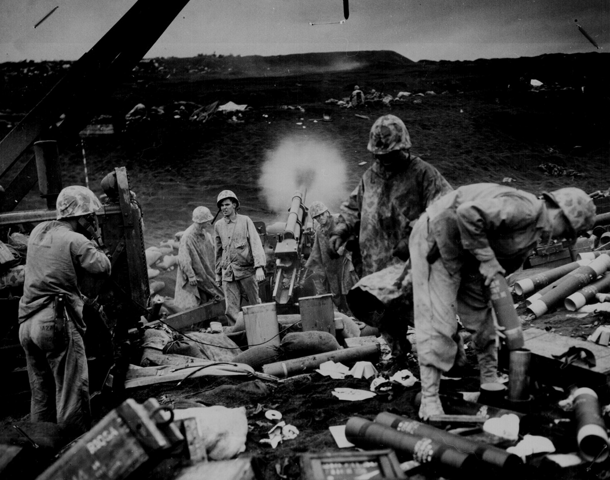 Битва за Иводзиму между войсками США и Японской империи, февраль 1945 года.