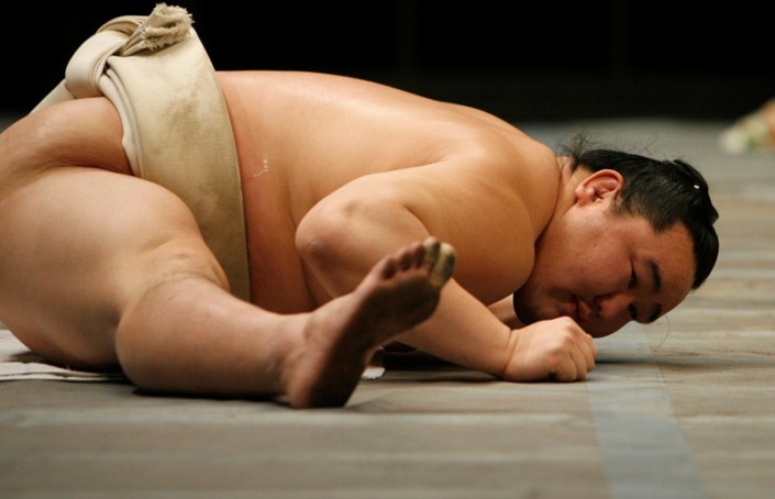 3. Сумо - очень травмоопасный вид спорта. Стартовый контакт - это столкновение двух в среднем 155-килограммовых борцов с совокупной скоростью 50-60 километров в час. По травмам на первом месте идут колени, затем локти, спина и шея, голеностопы и пальцы.
