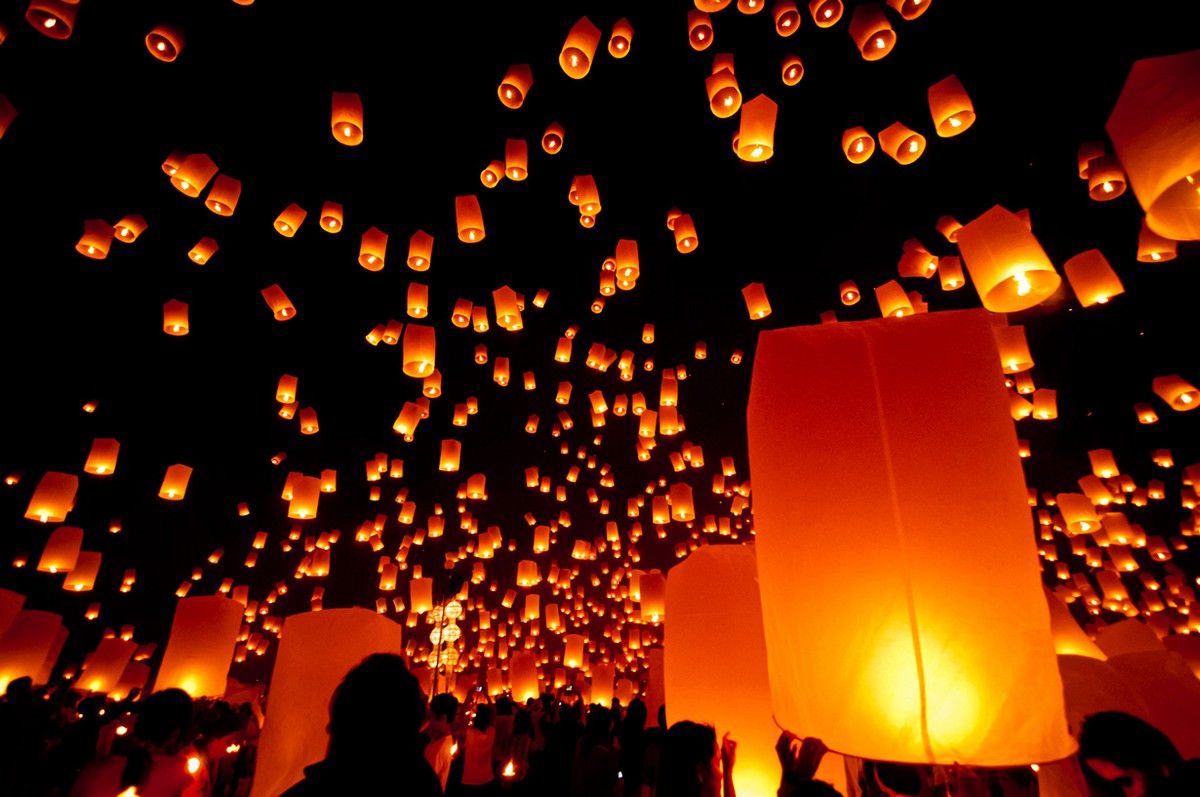 Лойкратхонг - праздник в Таиланде, который отмечается во время ноябрьского полнолуния. В этот день верующие очищаются от грехов, обид и плохих мыслей путем пускания кратхонги из листьев бананового дерева в воду и небесных фонариков в небо.