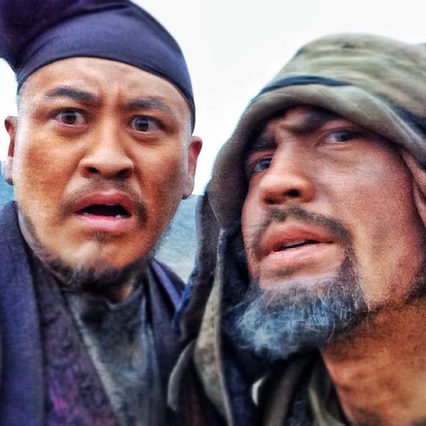 Актеры Ерден Телемисов и Санжар Мадиев весело проводят время на съемках фильма