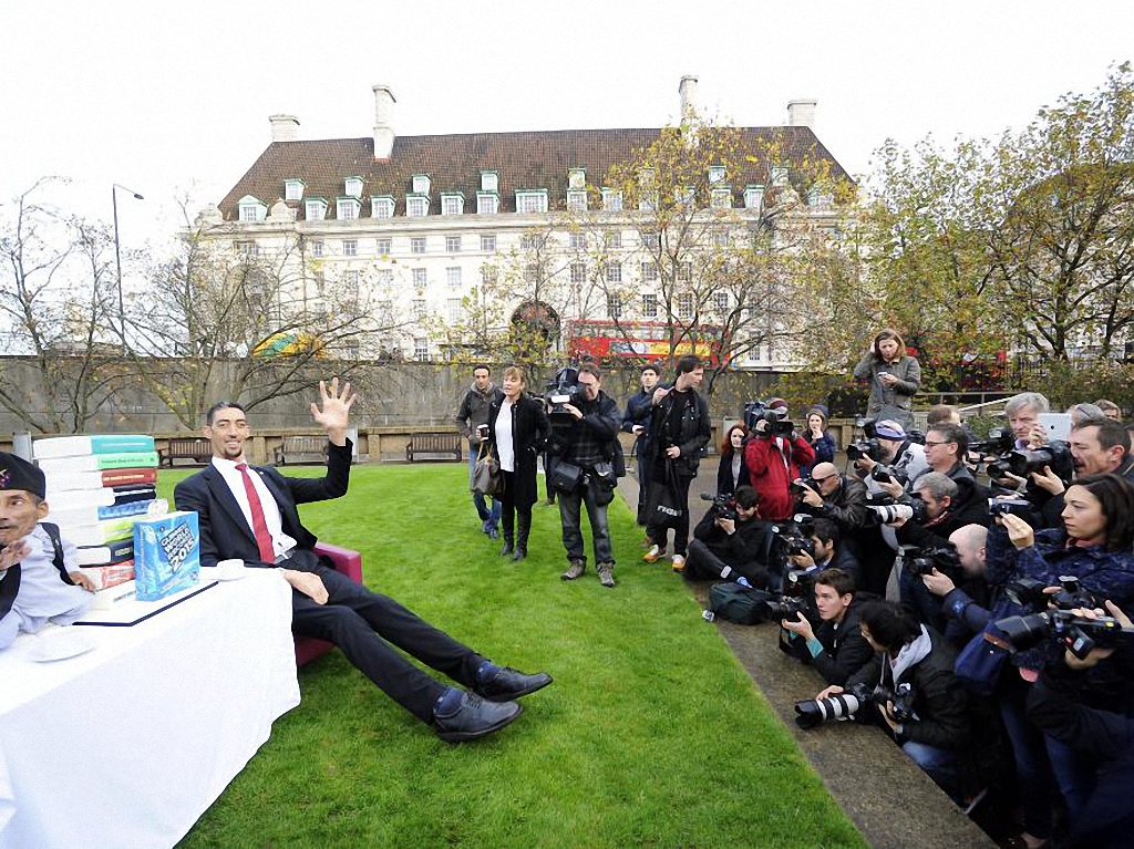 Самый низкий и самый высокий человек в мире встретились в Лондоне по случаю проведения фотосессии для Книги рекордов Гиннесса. Фотография Султана Кесена - самого высокого человека в мире рядом с Чандрой Бахадуром Данги - самым низким человеком в мире выглядит очень трогательно.