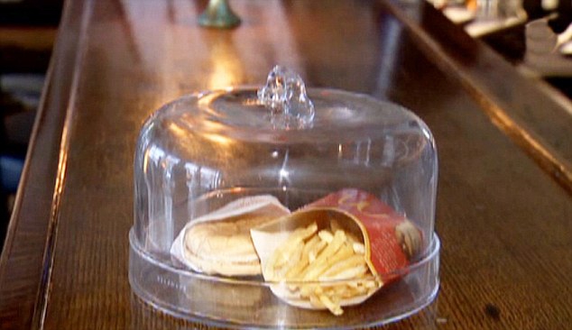 В настоящее время чизбургер-долгожитель и картофель фри хранятся под стеклянным колпаком.