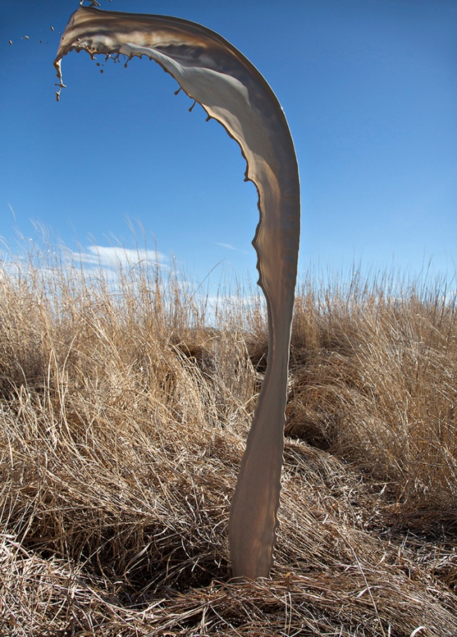 Основатели студии Floto + Warner фотографы Кассандра Уорнер и Джереми Флото представили серию ярких пейзажей Clourant. На фотографиях запечатлены фигуры из застывших в воздухе брызг краски, которые невозможно увидеть собственными глазами: фотографии сделаны при выдержке в 1/3200 секунды.