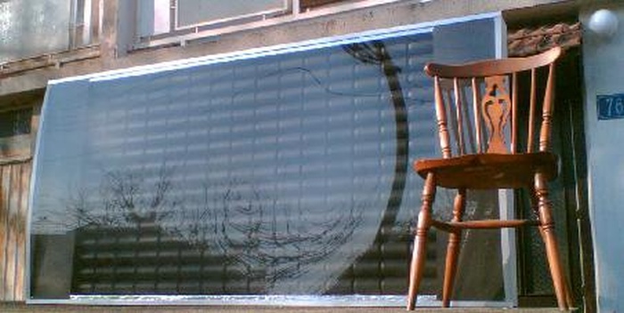 Гелиоприемник окрашиваем в черный цвет и помещаем в шкаф. Сверху покрываем оргстеклом, тщательно подогнанным к раме. Поликарбонат или оргстекло должны быть слегка выпуклыми, чтобы получить большую прочность.