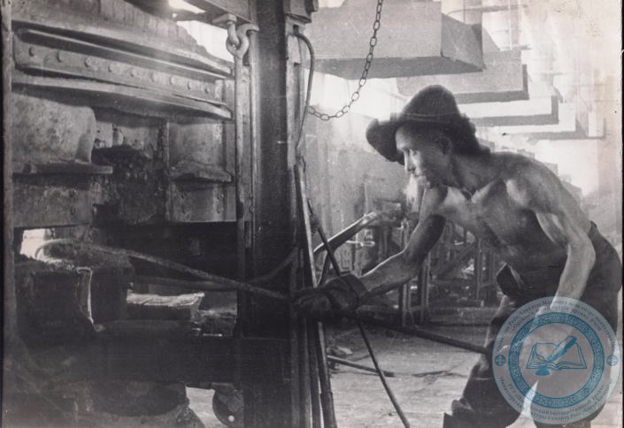 Старший купелеторщик Чимкентского свинцового завода Д. Ордабаев. 1945 г. Из фондов ЦГА МКС РК.