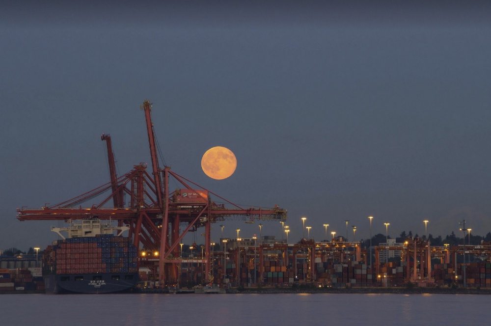 Суперлуние-2014 над гаванью Ванкувера (© David McNew).