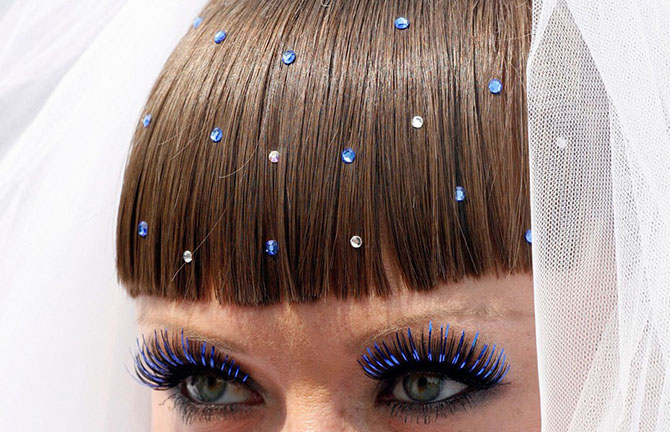 2. Участница парада невест в российском Красноярске. В шествии участвуют сто молодых замужних женщин. Они заново переживают памятный день своей свадьбы.