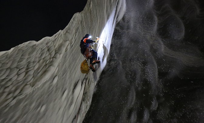Спуститься в воронку летом у исследователей не получалось из-за постоянного обрушения грунта. В этот раз участники экспедиции спустились на глубину в 200 метров при порывах сильного ветра, скорость которого достигала 20 метров в секунду.