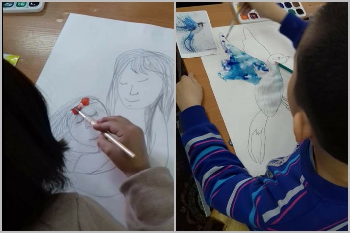 Мастер-класс по живописи вели известные художники Лидия Дроздова (Алматы) и Игорь Гущин (Санкт-Петербург). Дети к 8 Марта рисовали портреты мам, натюрморты, весну.