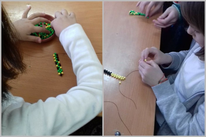 Мастер-класс по плетению бисером. Людмила Старожилова учила деток плести браслеты. Каждый сам придумывал дизайн, рисунок.