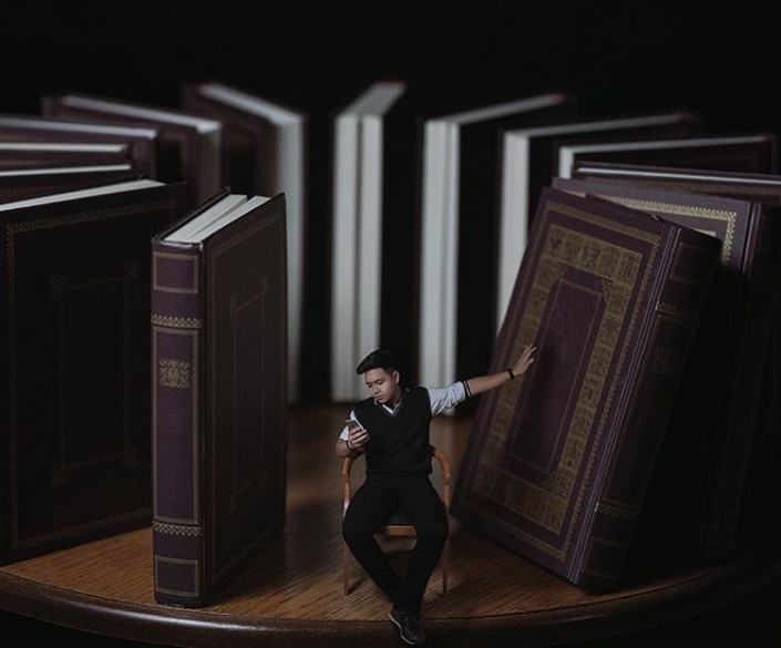 Также фотографа огорчает обесценивание книг в современном мире. По его мнению, чем больше человек читает, тем больше он возвышается. Поэтому на этом фото вместо воздушных шариков - книги.