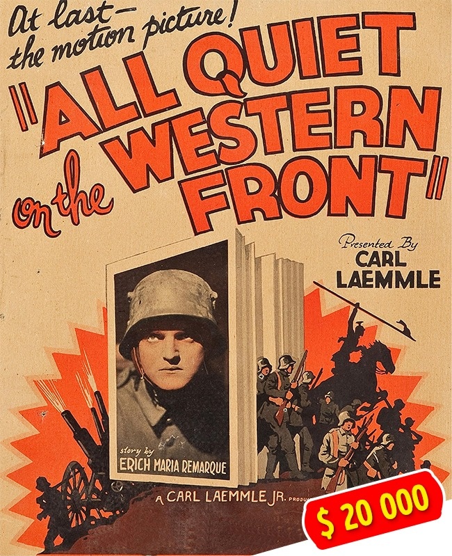 На рынке в Саммервилле Лаура Стоуфер купила копию афиши одного из старых фильмов и уже дома догадалась отделить от нее картонную основу. Внутри обнаружился постер фильма «На западном фронте без перемен», который оценивается в 20 тысяч долларов.
