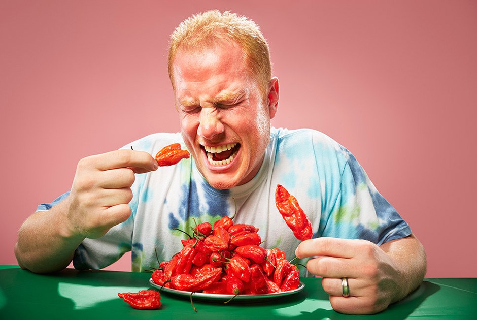 Джейсон Макнаб умудрился съесть за минуту 123 острых перца чили.