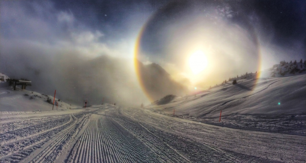 Гало - это ледяной аналог радуги. Главное отличие заключается в том, что преломление света происходит не на каплях жидкой воды, а на кристаллах льда.