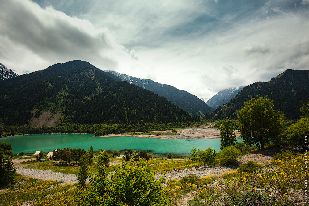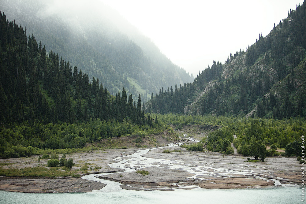 "Горное озеро на высоте 2000 метров, чистейшая вода нереального бирюзового цвета и мертвый лес, стоящий среди нее, - когда-то здесь росли деревья. Вдалеке плавает утка и орет на всю округу, а эхо от ее кряканья разносится в горах... Это утро просто взорвало мой мозг", - пишет Французов после посещения озера Каинды.