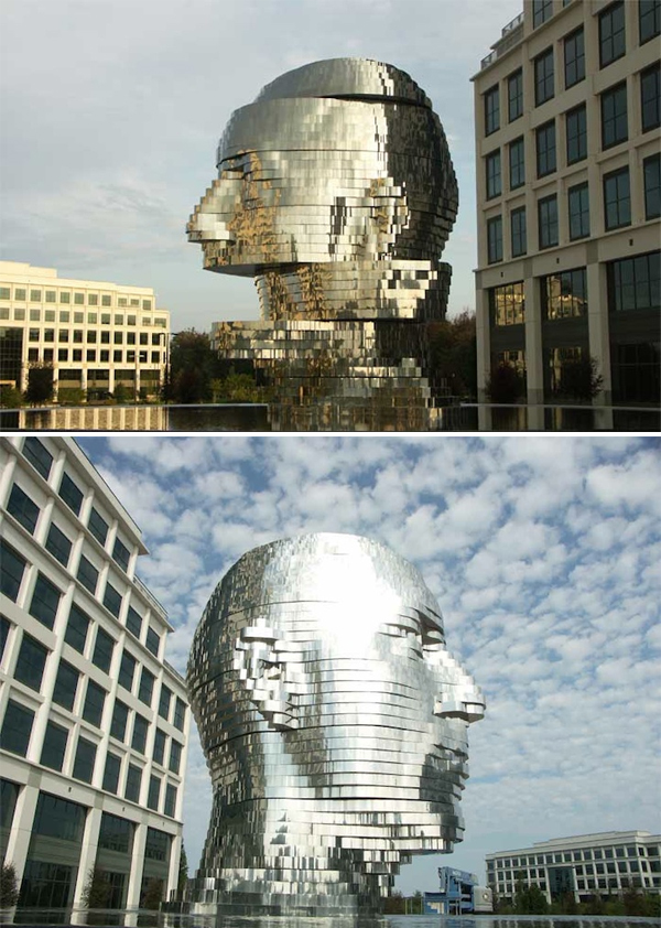 Мозговзрывающая Metalmorphosis от Давида Черного расположена в городе Шарлотт и сделана с помощью разрезанных стальных пластин, которые вращаются в разных направлениях