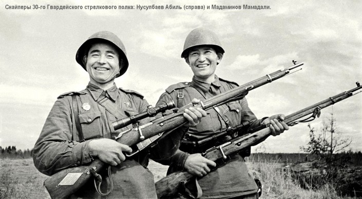 "Эге-е... Это не пулемет, не шальная. Бьет гитлеровский снайпер!" -сквозь боль прошептал Абиль Нусупбаев.