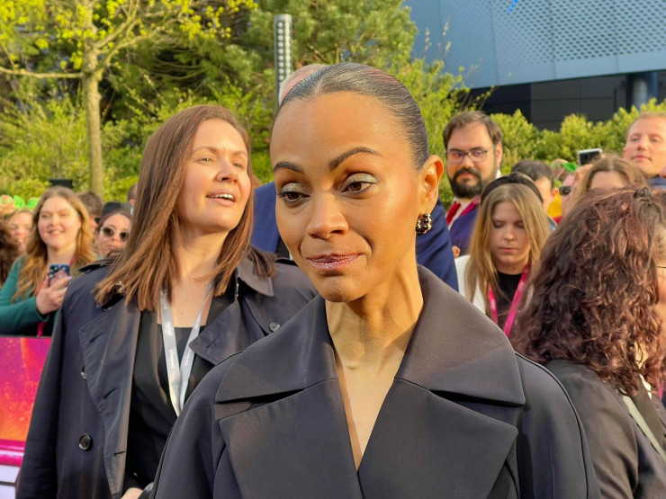 Погода была солнечной, однако актриса Зои Салдана выбрала очень легкий полупрозрачный наряд и за 20 минут на сцене успела замерзнуть. Ее коллега Крис Пратт не оставил это без внимания и любезно предоставил свой пиджак, чему Зои очень обрадовалась.