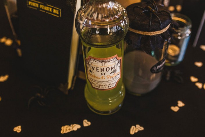 Пара планировала торжество более года, чтобы в деталях воссоздать атмосферу, в которой жил их любимый герой. Лица молодоженов красовались на плакатах из Министерства магии. Каждый из 130 гостей получил волшебную палочку, а подружки невесты держали в руках бумажные букеты, сделанные из 20 разрезанных экземпляров книг.