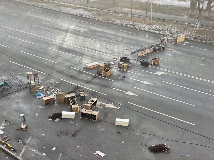 Баррикады из мебели, вынесенной из ресторана.