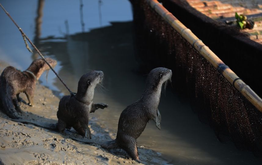 Ловля рыб при помощи выдр - привычный для жителей Бангладеш способ.