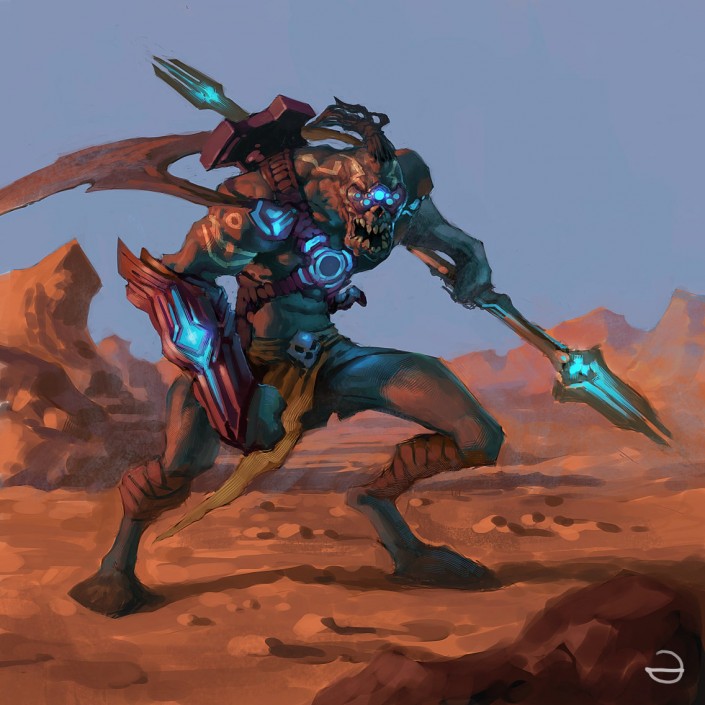 "Мне перестают нравиться старые работы. Со временем начинаешь замечать ошибки, меняется стиль. Техника прошлых работ тоже перестает устраивать. А вот то, над чем я работаю сейчас, мне очень даже по душе. Это постер для игры, но я не могу его показать из-за условий договора".