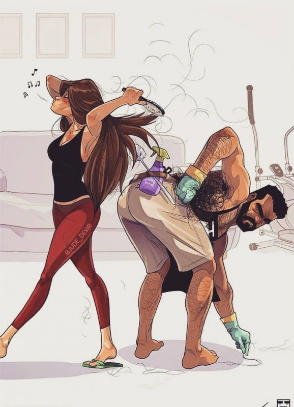 TengriMIX не раз делился с вами иллюстрациями израильского художника Иегуды Девир, в которых главными героями являются он и его супруга. Правдивые моменты из жизни пары вызывают улыбку, ведь забавная бытовуха, несхожесть характеров и мелкие радости знакомы всем семейным людям. Взгляните на свежую порцию работ Иегуды и поднимите себе настроение.