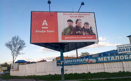Финансовая организация выступила с заявлением после появившихся в Киеве рекламных билбордов, где были изображены трое погибших лидеров самопровозглашенной ДНР - Гиви, Моторола и Мозговой.