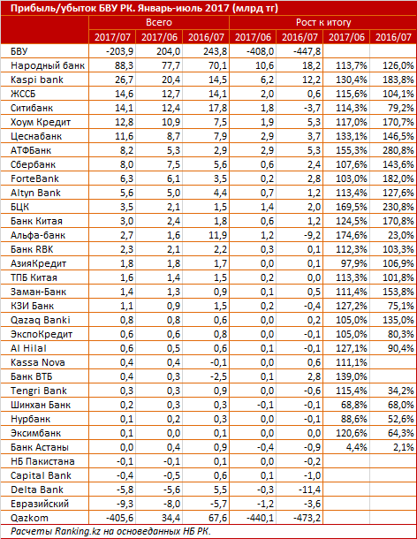 Банковский сектор Казахстана с начала года и до конца июля зафиксировал убытки в размере 203,9 миллиарда тенге. Такого не было с 2012 года, отмечают аналитики Ranking.kz.