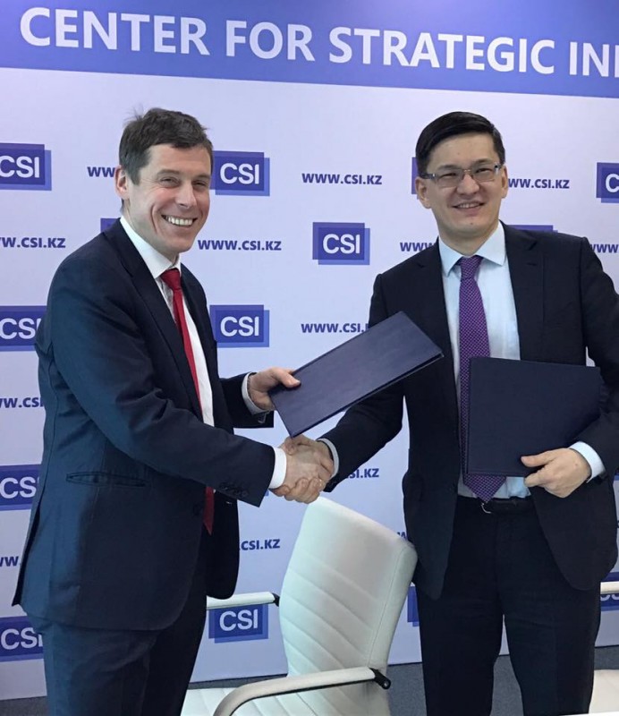 Центр стратегических инициатив (CSI) и Thomson Reuters (Markets) SA (TR) подписали Меморандум о взаимопонимании, закладывающий основы для стратегического сотрудничества на рынке Казахстана. Меморандум подписан старшим партнером CSI Дарменом Садвакасовым и управляющим директором Thomson Reuters в России и странах СНГ Петром Марчевски.