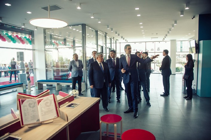 Экскурсию для гостей проводили председатель правления ForteBank Гурам Андроникашвили и директор филиала Еркинбек Мусабаев. Они рассказали, что концепция и стиль офисов долго обсуждались и тщательно разрабатывались профессионалами итальянской дизайнерской компании DINN. Главной особенностью отделений являются удобные зоны самообслуживания, избавляющие клиентов от ожидания в очередях. Все необходимые услуги можно получить с помощью мобильного приложения, которое, кстати, открыто для всех пользователей. Будучи клиентом любого банка, можно скачать приложение ForteBank, зарегистрироваться и пользоваться всеми услугами банка.
