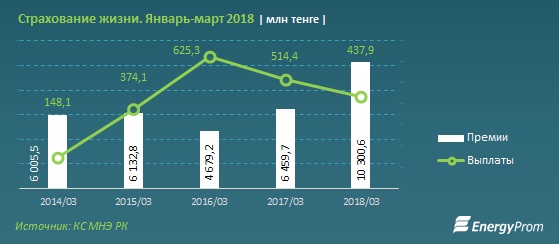 Казахстанцы, переживающие за свои жизни, отдали страховщикам за первый квартал 2018 года 10,3 миллиарда тенге, что сразу на 59,5 процента больше, чем годом ранее.  Об этом сообщается в исследовании Energyprom.kz.