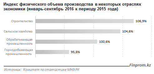 Примечательно, что учащение дефолтов по кредитам предприятий сельского хозяйства и строительства показывают на фоне роста производства. В январе-сентябре 2016 года аграрии Казахстана нарастили выпуск продукции на 4,6 процента, а строительные компании - на 6,9 процента.