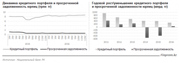 Цифры показывают, что после двух лет интенсивного сокращения просроченной задолженности по кредитам, казахстанские предприятия в 2016 году вновь вернулись к увеличению просрочек. В 2016 году объем просроченной задолженности по корпоративным займам увеличился на 79 миллиардов тенге при росте ссудного портфеля на 306 миллиардов тенге.