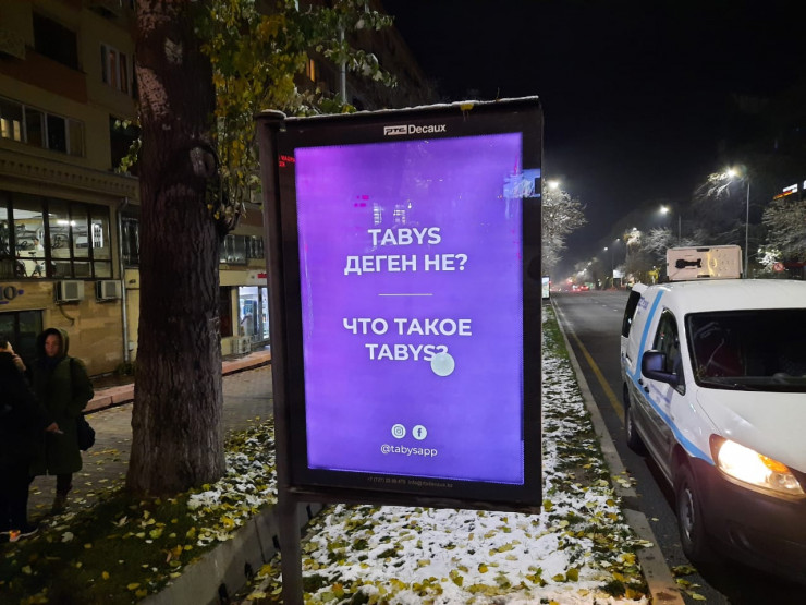Волна таинственной тизерной рекламы прокатилась по всему Казахстану. Сначала на улицах Алматы появились баннеры, которые задавали прохожим странный вопрос: "Что такое TABYS?".
