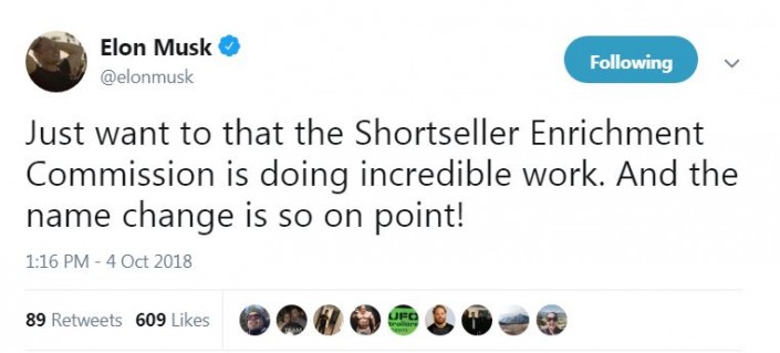 27 сентября Комиссия по ценным бумагам и биржам подала на Илона Маска в суд, обвинив его в мошенничестве. Это привело к падению акций Tesla на 12 процентов.