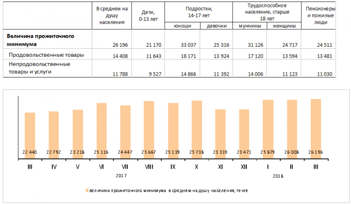 Величина прожиточного минимума в марте 2018 года составила 26 196 тенге. Об этом сообщили в Комитете по статистике МНЭ РК, передает Tengrinews.kz.