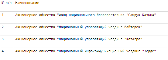 Таб 1. Перечень субъектов квазигосударственного сектора, в отношении которых определяется предельный объем внешнего долга