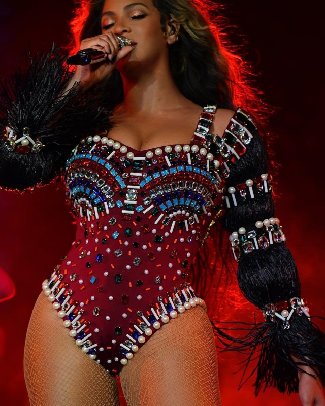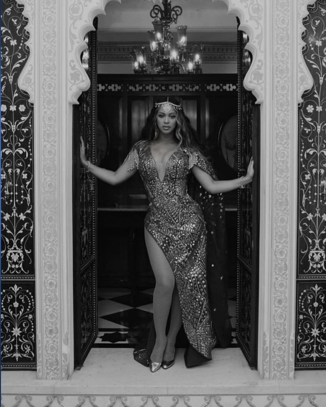 Бейонсе надела платье, напоминающее традиционное индийское сари. А на сцене перед гостями свадьбы появилась в привычных блестящих комбинезонах.